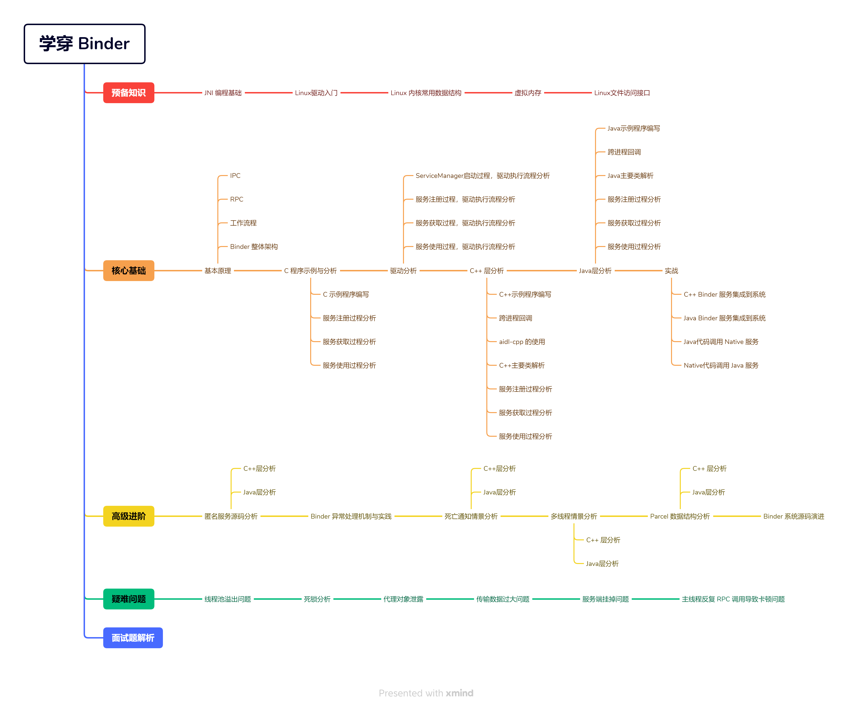 我会把这个思维导图放到课程资料中,我们可以把这个思维导图作为一个向导,来指引我们 Binder 的学习。